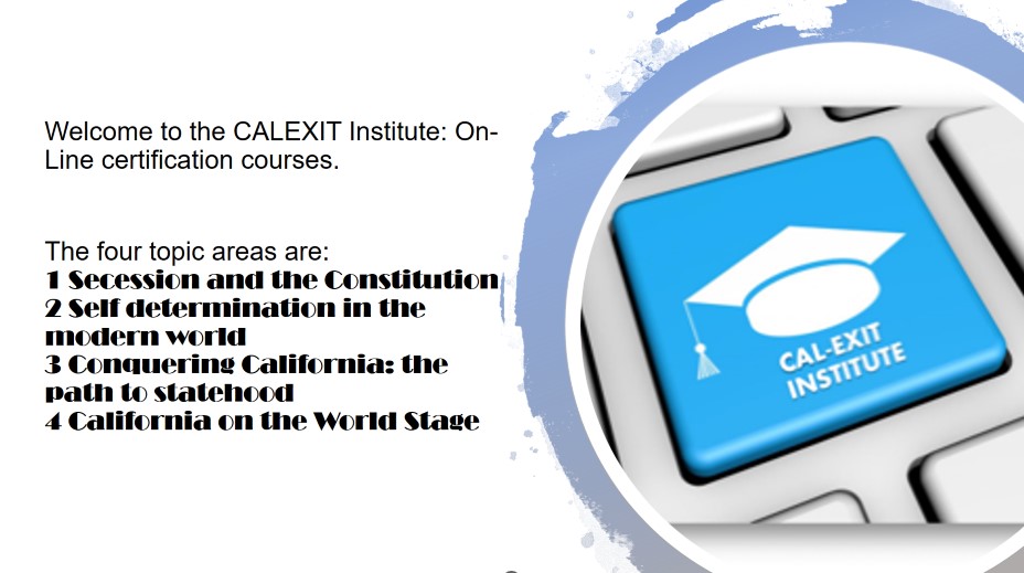 Completion of each topic will result in your own certificate of accomplishment from the Yes California Calexit Congress:
